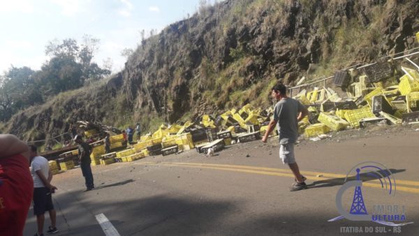 Segundo informações da Polícia, um caminhão com placas de Trindade do Sul-RS conduzido por L. C. P, de 46 anos, tombou sobre a pista bloqueando o trânsito em ambos os sentidos. Deste acidente, restaram danos materiais de grande monta no caminhão e lesões graves no condutor. Ele foi socorrido pelo SAMU de Erval Grande e conduzido ao hospital de Erechim.